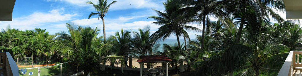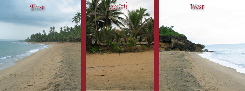 Casa Badillo in the Puntas suburb of Rincón, Puerto Rico is a private guest house with a yard sitting in the shade of coconut palms on Sandy Beach. It is located just downslope from La Cadena Hills which mark the western edge of the tropical-forest-covered Cordillera Central (central hills). Nearby habitats include a small pasture (grassland), an empty lot (grass, weeds and short shrubs), forest (acacia, mango and other trees), rural yards (short grass, cultivated plants), and of course a sand beach (coconut palms, beach vine, beach bean, other vines). Sandy beach runs east-west with the AtlanticOcean to the north. The western edge of the beach is marked by an outcrop of eroded Karstic limestone rocks, which we refer to as "Bikini Rock" (maps label the area as "Punta Gorda"), resting on sandstone. The eastern edge is loosely denoted by tidepools set in smooth sandstone lying at a slight angle on the beach.