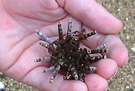 There is so much nature just under the surface of the water that there's no way we can do it justice here. About 10 yards from the shore there is a line of rocks in about 6 feet of water that house seaweeds, sea urchins, sea cucumbers, sea biscuits, chiton, fish, small sharks and other creatures. Beyond that the sea floor is sandy for at least 50 yards out and slowly deepens to about 12 feet. There is probably live coral further out, or to the west of Sandy Beach. Many different types of shells was ashore including scallop, periwinkle, cones, cowrie and snails.