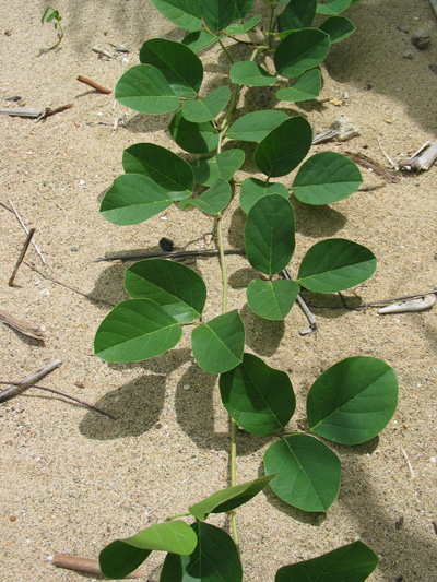 Beach Bean, (Cannavalia maritima) which we were calling "Green Three-Leaf" (on beach)