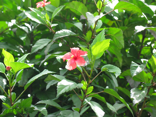 There is an amazing variety of plants in our neighborhood. Residents plant all the regular "exotic" tropical species such as hibiscus and banana. The weeds seem to be dominated by relatives of the pea family, with some wild cucumber, milkweed, and morning glory. All along the edge of the beach, for miles, the coconut palm dominates the landscape. Casa Badillo has eleven coconut trees in its small backyard, not counting the ones leaning over from the adjacent properties.